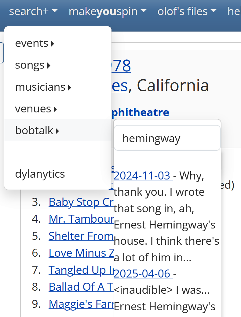 Even with more than 3,500 instances of bobtalk logged in Olof’s Files, Luke has found there is still more to be captured. Make no mistake, this is not a selective light-touch project. In the same spirit as everything we like to do here at bobserve, Luke is taking a fresh look at all the decades’ worth of spoken word (seriously!), and he’s taking nothing for granted. It’s an ambitious project, and I am pleased to be able to collaborate with Luke on a way to bring this work to Dylan fans.