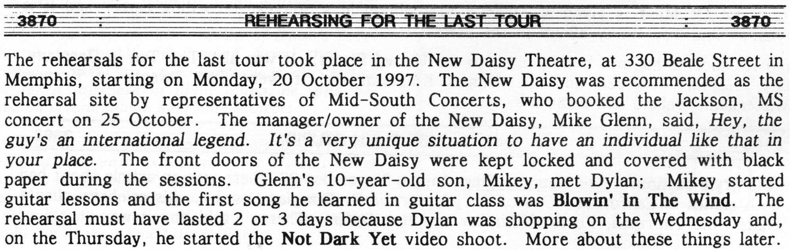 Today we focus on rehearsals in which Bob Dylan participated, as documented by Ian Woodward in The Wicked Messenger (TWM) series.