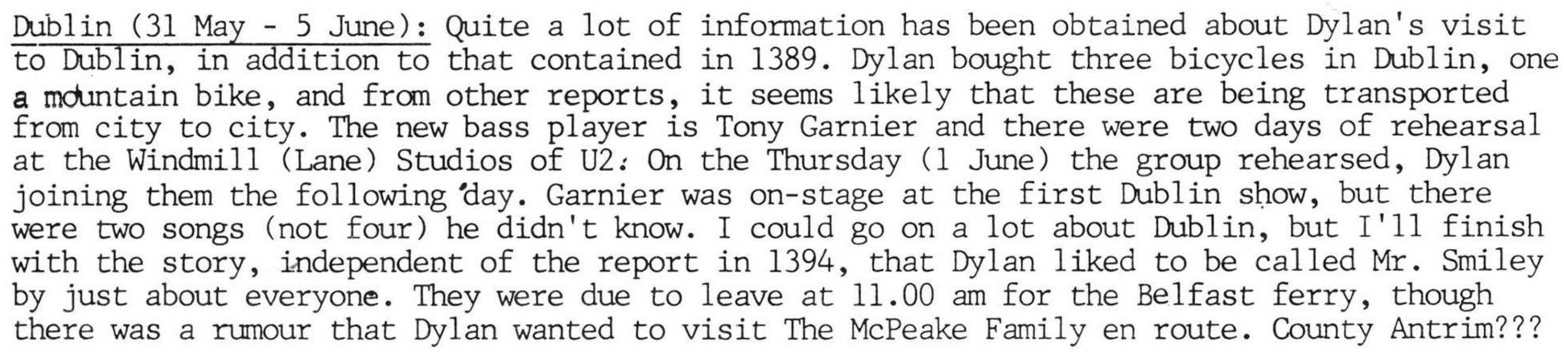 After three Scandinavian shows in May 1989, Dylan and the band paused briefly for some rehearsal time on June 2, 1989 at the Windmill Lane Studios. This was just prior to a pair of Dublin concerts. Oh, and it was Tony Garnier’s first time joining the band. He would go on to perform more than 3,200 times with Dylan, and counting!